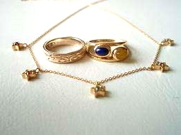次回オーラソーマ・ジュエリー展は 2010年11月21(日)22(月)23(火・祝)を予定しています。 ツインソウルはPOFで、いつでもオーダー可能です☆ ツインソウル専用セッションでは、 オーラソーマ、数秘、西洋占星術、あらゆる智慧をフル稼動して マンツーマンでしっかり、あなたに最適のツインソウルを選んでいきますよ☆ ご予約・問合せ 【ジュエリー効果】 2010年6月22日(火) 水晶の月24日KIN 75 青い惑星の鷲 満登香です。昨日の日記で書いた通り、今日は下の写真のB34、B47、2つのジュエリーから今日まで私が受け取った効果について書いてみようと思います。まず第1に感じるのが、『強くなった』ことです。今までは動じてしまって逃げていたことに、正面から向き合うようになりました。B34、ヴァースオブヴィーナスには、自分を安売りしない(すごい言葉だが・笑)自立した女性、なんて意味があります。また、B47は、深い叡智から人を教え導く教師のボトルでもあります。この2つの組み合わせって、最強つよいな~って感じなんですが、まさしく私の内面にもそんな変化がやってきています。 そして、そんなジュエリー効果なのか、今日また1つ、ずっと、相手の方のために、自分のために、全体のために、言うべきだ と思いながら、先送りしてしまっていたことに、正面から向き合いました。相手の方に、あることを伝えなくてはいけない、とずっと思っていたんですが、その方が自分自身を否定されたと誤解して傷ついてしまうんではないかと心配でずっと言えなかったのです。でも、今日は勇気が自然と湧いてそのことをお伝えすることが出来ました。 今はそれをお伝えすることが出来て、役目を終えたような感覚で安らいでいます。 そんなこと伝えずに、スルーしちゃう方がよっぱどラクなんですけどね。いつまでたってもそんなドライな生き方は出来ないな~。あひ~。 満登香 【ひとりジュエリー撮影会♪♪】 2010年6月21日(月)水晶の月23日 KIN 74 白い太陽の魔法使い 満登香です。先日届いた、おNEWのオーラソーマ・ジュエリー、本日ひとり撮影会をしてみました☆今回、我が家の新しいメンバーにに加わってくれたのは、B34(ヴァース・オブ・ヴィーナス)の☆型ペンダントと、B47(オ-ルド・ソウル)のリング☆1月に作ったツインソウルと合わせ、ゴールドのアイテムが3つになりました。 B47のリングは、2本でワンセット!だから、色んな付け方が出来るんです~♪ツインソウルとの重ね付けもいい感じ☆ ↑の写真では、内向きに合わせてちょっと蟹座のマークみたい。蟹座的な、仲間を大切にする心も養ってくれそう♪ 外向きにつけると、数字の8や、∞のマークみたいでこれまた一粒で何粒分もオイシイ♪(笑) そうそう、ジュエリーと言えば!先日の、オーラソーマジュエリー展の時に、ツインソウルを作ってくださったMさんから『ずっと自分が望んでいたような職場に、出会うことが出来ました!』と、とっても嬉しいご報告をいただきました。(´▽`*)すごーい!Mさんのあふれる笑顔に、私たちも思わずウルっと、感動してしまいました。 Mさんは、初めから『ソウルグループを引き寄せてくれると言われるツインソウルを持って、自分にあった職場を引き寄せるゾ!』と意図を持って、オーダーしてくださったのです。その前向きな意図と、想いの強さが、ミラクルを加速しているのが分かります。Mさんは今回、そのコミットメントをパワーに、長い期間面接を受け、あきらめず自分に最も良い職場が用意されていることを信じて就職活動を続けられました。そしてついに、たくさんの倍率を突破し、そのお仕事の面接に合格されたのです。Mさん、本当におめでとうございます(*^▽^*)ノ~~