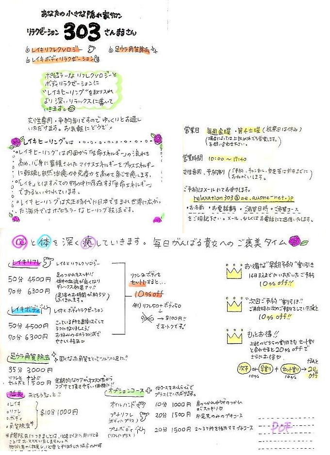 2012年7月3日(火)-2 満登香です。POF現代レイキ協会認定スクールの卒業生、知子さんが、 レイキを使ったリフレクソロジーや整体のご自宅サロンを始められました♪ もともと、整体師さんであり、リフレクソロジストである知子さん。 レイキを身につけて、ますます気持ちのイイ~施術をしてくださいます! 私のオススメはオイルハンド♪手って以外と疲れが貯まりやすいから、 ケアしてもらうとすごーく気持ちがいいですよ^^ 知子さんのあたたかなお人柄にも、癒されます♪ 誠実な施術をしてくださるので、安心して受けられます。 最近肩こりがひどくて、なんて方はぜひ知子さんのゴットハンドに 癒されに行ってみてはいかがでしょうか?(*^0^*) スキャナーで読み取ったため、一部かすれてしまい、読みにくくて申し訳ありません。 その他、詳細はぜひ下記、知子さんのサロンのメールアドレスへお尋ね下さい。 リラクゼーションサロン303 南林間駅から徒歩4分☆ relaxation303★ae.auone-net.jp ★を@マークに変えて送信して下さい。 2012年7月3日(火)-1 満登香です。2日間に渡って開催されましたオーラソーマジュエリー展 両日とも、沢山の方にお越しいただき、大盛況のうちに修了いたしました。 皆様、本当にありがとうございました。 今回、本当に不思議なことに、それぞれ個別で選んでいるにも関わらず 同じボトルでジュエリーを創る方が沢山いらっしゃいました。 一番多かったのは、最新ボトルのB110。ついで、とても数字が似ているB101。 B11の方も複数いらっしゃいました。 ご購入者様の半数以上の方が、『110』『101』『100』『11』といった、 『1』の数がつくボトルで作られたことは、単なる偶然とは思えず大変興味深いです。 『1』がつかなくても、『47』や『46』といった、一ケタ台と二ケタ台を足すと11や10になる ボトルで創られた方も複数いらっしゃいました。 1は、始まり、スタート、自立などを表す数。 これから、やっていくぞ~!という始まりの強いエネルギーでもあります。 多くの方が、今、新しいスタートの流れの中にいるのかもしれませんね。 ![]() 今回は満登香も、リングをオーダーしました。念願叶って、B110です! 私はこのリングに入れる石を選んでいる最中、ここ数年間での自分の変化をしみじみ感じていました。 選ぶ石が、非常に強い石なのです。 このリングの石の選択肢は、ルビー、ピンクサファイヤ、ピンクトルマリン、ローズクォーツ・・・ 以前の私なら、絶対ローズクォーツを選んでいたはず・・・繊細で優しくて愛を与えてくれる石・・・今でも大好きですが・・・ 今回は、迷うことなく、ルビーとピンクサファイヤで作りました。 ものすごくエネルギーを感じます。 左手の薬指にはめることも、自分にとっては大きな変化です。 阿部先生のグリットリーディングでは、意識が根底から塗り変わっている時期と言っていただきました。 まさに、今、自分の意識が塗り代わっているのを、感じています。 初めて作ったオーラソーマジュエリーは、4年前の、B11。石はローズクォーツと、ホワイトトパーズ。 B11のジュエリーを創った頃の自分と、今の自分と全然違う。 自分を愛するのがまだまだ苦手で、自分なんてとどこかで思っていたのがウソのよう。 心が、軽い。 私はこの急速な変化に、B11のジュエリーが大きく貢献してくれたと思っています。 ジュエリーを見るたびに思い出される、そこにこめられた『意図』。 自分を愛するぞ、という意識付けが、思考習慣を塗り替えてきてくれた。 自分のことって、自分でしか何とか出来ない分、 自分が何とかしようと立ち上がったら、宇宙はちゃんとサポートを沢山沢山与えてくれる。 ローズクォーツの学び(自分を愛する学び)から、力強く輝き、守るべきものを愛する学び(ルビーやピンクサファイヤ)へ。 ジュエリーという相棒とともに、これからも、楽しく進んでいきます! 最後に・・・ 今回のイベントを楽しく盛り上げてくださった、阿部先生と、スタッフさんたちと一緒に。。。 ちなみに、ロケット千手観音と、ラインダンスが撮影されたのは、 2日目の最後のお客様が帰られて、片付けをした後、夜の23時。。。 カーテン開けてましたから、外からよく見えたと思います。 夜中の23時に、ラインダンスしてる店・・・。 通行人の方を驚かせてしまったらごめんあそばせ!(笑) (予告)次回、第7回POFオーラソーマジュエリー展は、2013年7月頃開催予定です♪ 2012年7月1日(日) 満登香です。オーラソーマの生徒さんからPPSコースのご感想をいただいたり レイキの生徒さんがご自宅サロンを始めたり、ここでご紹介したいことが沢山あるのですが、 本日初日のジュエリー展の準備でバタバタしておりました。(上記のことはゆっくり2日以降に!) まずは、本日オーラソーマジュエリー展初日、ご来場いただいた皆様、ありがとうございました! 朝9時半から、夜22時くらいまで、途切れることのない沢山のお客様が、雨の中、足をお運びくださったこと、