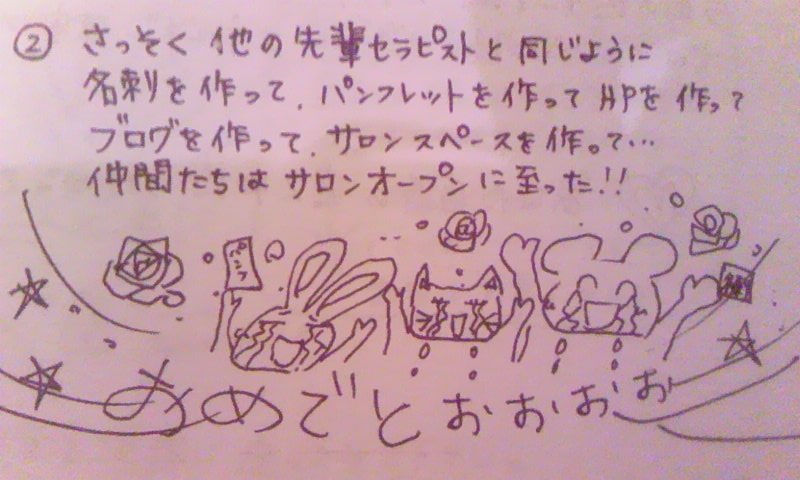 こちらも近日、サロンメニューに加えて参ります~♪ どうぞ、楽しみにしていてくださいね~☆ マイナスエネルギー浄化 生命エネルギー活性化 本来の自分に気がつきより輝いていける自分造り など・・・ 現代レイキを学ぶことであなたも、日常で簡単ケア! 現代レイキ『新規』受講生募集中♪3週間以上先の日程で、ご希望日をお知らせ下さい。ご予約・問合せ 宇宙王子、ダルオさん。色々謎すぎる彼ですが、常にセラピーを学び続ける、彼の腕はピカイチです♪♪♪ 開業・結婚・人間関係 全てのジャンルであなたの運気UP方法を個別伝授! 運気を妨げている要因もクリアにし、あなたの夢を叶える最適サポート★ 11~12月のご予約、好評受付中!ご予約・問合せ この日時内だけは、普段と異なり予約が不要です。14~18時半までの間のお好きな時間にお越し下さい。(ラストオーダー18時30分) 一般開放DAYのため、どなたでも気軽にお越しください。 2012年11月13日(火)-2 満登香です。 季節は11月半ばになり、秋の味覚の時期もそろそろ終わり。 今年は驚くべきことがありました。 いつものようにスーパーマーケットで1個100円で買って来た柿。 なんと、そこに まるで人の顔のようなものが浮かび上がっていた(゜Д゜|||)ノのです。 あまりにクッキリ浮き出てるから、何かの間違いかと思いましたよ・・・ それは・・・ ・・・このネタのために、自分でマジックで書いてやったぜ~ワイルドだろ~う? マイナスエネルギー浄化 生命エネルギー活性化 本来の自分に気がつきより輝いていける自分造り など・・・ 現代レイキを学ぶことであなたも、日常で簡単ケア! 現代レイキ『新規』受講生募集中♪3週間以上先の日程で、ご希望日をお知らせ下さい。ご予約・問合せ 宇宙王子、ダルオさん。色々謎すぎる彼ですが、常にセラピーを学び続ける、彼の腕はピカイチです♪♪♪ 開業・結婚・人間関係 全てのジャンルであなたの運気UP方法を個別伝授! 運気を妨げている要因もクリアにし、あなたの夢を叶える最適サポート★ 11~12月のご予約、好評受付中!ご予約・問合せ この日時内だけは、普段と異なり予約が不要です。14~18時半までの間のお好きな時間にお越し下さい。(ラストオーダー18時30分) 一般開放DAYのため、どなたでも気軽にお越しください。 2012年11月13日(火)-1 満登香です。本日はオーラソーマ(R)英国オーラソーマ社認定スクールL1、全6日中の、5日目。 美しいブルーのボトルを選ぶ、受講生さんのAさんが、 ご自宅でパン教室をされている方で、毎週のようにパンを焼いて来て下さいます。 先週のパン。ほんのりメープルシロップ入りの生地 今週のパン。ザラメとミルクの生地。 ブルーはクリエイティビティの色。さすがAさん、とてもクリエイティブです。 Aさんのパンは、これまで食べたことが無いような、美味しいパンで、皆大感激です。 何も派手な具が入っていないのに、生地がすごく美味しいんです。 Aさん、いつも本当にありがとうございます。 *** 講座が終わった後は、一足早く、クリスマスシーズン用の、ネタ仕込み経営会議。(ダルオと2人で。) そろそろ早いもので、もう、クリスマスシーズン到来でございます。 12月の月1Cafe(日程調整中)は、クリスマスバージョンでパワーアップしてお届けする予定☆ 満登香、ちょいメイドカフェ風。 ダルオ、ちょい職質されそうなレベル。(※職質=警察からの職務質問・爆) 来月のカフェは、こんなクリスマス・スタイルで開催いたします♪日程が決まり次第、こちらのHPでお知らせします。 今月の月イチcafe 11月27(火)14~19時です。11月はふつうです(笑) でもフライングしたい方はぜひ、クリスマスコスプレでお越し下さい・わたしたちは温かく見守ります(爆) ※月1カフェの日時内だけは、普段と異なり予約が不要です。 14~18時半までの間のお好きな時間にお越し下さい。(ラストオーダー18時30分) 一般開放DAYのため、どなたでも気軽にお越しください。^^ マイナスエネルギー浄化 生命エネルギー活性化 本来の自分に気がつきより輝いていける自分造り など・・・ 現代レイキを学ぶことであなたも、日常で簡単ケア! 現代レイキ『新規』受講生募集中♪3週間以上先の日程で、ご希望日をお知らせ下さい。ご予約・問合せ 宇宙王子、ダルオさん。色々謎すぎる彼ですが、常にセラピーを学び続ける、彼の腕はピカイチです♪♪♪ 開業・結婚・人間関係 全てのジャンルであなたの運気UP方法を個別伝授! 運気を妨げている要因もクリアにし、あなたの夢を叶える最適サポート★ 11~12月のご予約、好評受付中!ご予約・問合せ 2012年11月12日(月) 満登香です。 本日は、はるばる、東京浅草から ダルオのオーラソーマ・ミニコンサルテーションのご予約。 とっても可愛らしい、素敵な女性お2人がお見えになりました。 ダルオのセッションですが、私も最初にご挨拶させていただきました。 お越しいただき、本当にありがとうございます。^^ *** 本日の、MY裏方仕事は、メールの返信、必要品の買い出し、