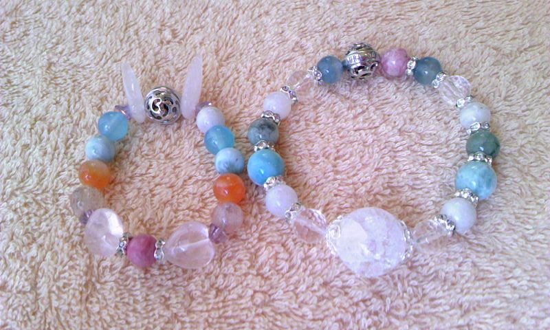 イベントページで、こっそり告知していました 2014年6月29(日)オリジナル・レゾナンス・ブレスレット作成講座 お陰様で午前の部は満席間近となりました。ありがとうございます。 午後の部はまだ、ゆとりがあります。引き続き、お申込み受付しております。 詳細はこちらをご覧ください 前回(昨年の10月開催時)の模様☆ 皆で、ペンデュラムで、必要な石を選んでいる場面です。 クリスタルにサポートしてもらいたいテーマを決めて、ペンデュラムを かざすと、必要な石の上で、ペンデュラムがくるくる回りだします。 そうして、反応のあった お石をトレイの上において、それぞれお好みの デザイン、直感で惹かれるデザインに仕上げていきます♪ 前回開催時のお客様方の作品集です。 今見ても、どれもとっても綺麗です。 時間内に2本、作成されたお客様が何名もいらっしゃり、可愛いブレスレットが沢山生まれました☆ 78番のボトルのような、深い癒しと味がありますね☆Sさま 微妙な色合いの組み合わせが何とも綺麗です☆Sさま 大切な方へプレゼントに作られたブレス☆カッコいいです。Iさま 可愛らしさに思わず皆の目がハートになったブレスレット☆Iさま インカローズの美しさが引き立つ、キュートなデザイン☆Mさま 透明感いっぱい☆ハートのグリーンに羽が映えてるようです。Mさま 神聖幾何学模様の水晶がポイントになっていて素敵です。Sさま ブルー系の石が爽やか☆おしゃれな配列ですね^^Yさま ふんわり、ほんかわした優し~い波長のブレスレット☆Mさま 味わい深い色合いが、内面の深い所をサポートしてくれそう☆Mさま こちらは満登香の作品☆この日研修で不在だったダルオさんへ。 こちらも満登香の作品です☆自分用にカラフルなのが欲しくて♪ キャンディカラーがとってもキュートです☆Sさま ブルーとイエローゴールド、グラデーションに味があります☆Yさま さりげない、左右非対称のポイントが効いています☆Tさま 全チャクラ対応でバランスが整いそうですね☆Cさま 2歳のMちゃんとママYさまの、ほんのりおそろいブレス☆素敵! 色んな色を使ってるのに安定感があってなんだか暖かいです☆Mさま 天使の羽が生えているのにクールでカッコいいです☆Yさま 落ち着きの中に遊び心☆3つの大きな水晶が効いています!Aさま あ~~♪可愛い♪どの子もみんな可愛い(^^)(←親ばかならぬ、石ばかです・笑) こうしてUPしてみて、私自身がとても癒されます♪ レゾナンス・ブレスレットには、貴方とクリスタルの波長を繋ぐ スペシャルな存在、『エナジャイジング・ガーネット』が必ず入ります☆ 貴方と共鳴する、世界で1つのお守りブレスレットが欲しい方、必見です^^ 2014年6月29(日)オリジナル・レゾナンス・ブレスレット作成講座 残席少なくなって参りました。 引き続き、お申込み受付しております。 ピンと来た方は、お早目に☆詳細はこちらをご覧ください 2014年4月15日(火)-2