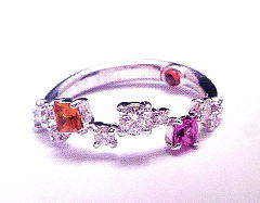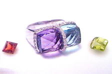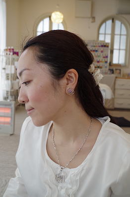 ③次に、100種類以上のデザインの実物サンプルから、お客様自身に、お好みのデザインを選んでいただきます。 本当に色んなデザイン&アイテムがあるので、迷いますっ。(でも乙女は迷うのも楽しいですよね~♪) ご試着は、心行くまでして頂けます!全身鏡で、着けた姿がどんな風に見えるかチェック★ ![]() ↑写真は見本です。2色の石が入ってる部分に、コンサルで導き出された自分の2色の石を入れて見てみます。