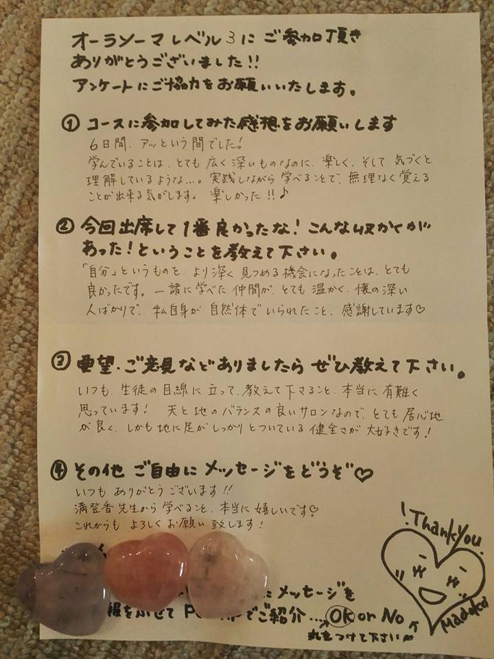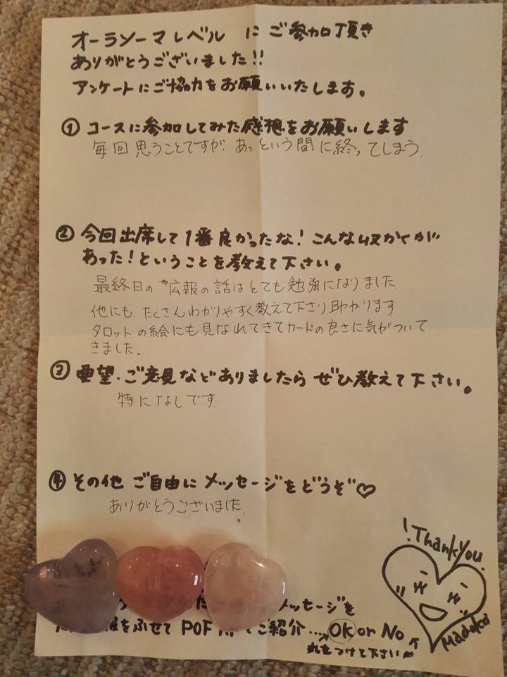 | 大矢満登香(まどか)Diary 2015年12月 過去の日記はこちら 通常、頂いたメールには、なるべく24時間以内、遅くても48時間以内には必ずご返信しております。不自然に返信が無い場合は、メールサーバーの不調が考えられ、実際に、不着や遅延が起きております。こちらからの返信が届かないお客様は、大変、お手数ですが、再度、ご連絡頂けますと幸いです。どうぞ宜しくお願いいたします。 ![]() 1● 自分が自分で在る事を 2● 自分の才能、個性を存分に 3● 自分を深く知りたい 4● 自分、家族、友人、クライアントの (気休めではない)具体的な 5● 精神科で心理検査に使われたり 国際的に信頼性の高い オーラソーマに興味がある そんな方を対象にした チャンドラさん所在地、地図 2015年12月22日 予約不要、途中入退場 自由、無料 の、とても、ゆるっとした会です。 私(主催の大矢満登香)自身が チャンドラさんでこうした会を カレーだけじゃなく 野菜たっぷりのスパイシーなオムレツ 米粉で作ったモッチリとした お好み焼きなど、 食べた事の無い感動を 与えてくれるレストランです。 あああ!書いてるだけで じゅるっとなります(笑)(^▽^*) 上記1~5にそれとなく 当てはまる、ご縁のある方 一緒に絶品料理を味わいましょう!!(笑) ※私の本業はオーラソーマを使ったカウンセラー オーラソーマのカウンセラーさんを養成することですが 当日のランチ会では カウンセリングなどは行いません。 が、気分をリフレッシュして心に 栄養与えるワークを無料ご提供させて 頂く予定です。 ※初めての方も歓迎 ※すでに、私と繋がりのある方も 遊びにいらして頂けたら嬉しく思います。 主催者 大矢満登香プロフィール 2016年1月開始オーラソーマL1 ※1月残席1名、3月残席2名 ※2月平日コースも新設されました! 現代レイキ講座日程募集中 スキル向上1Day講座 2015年12月19日-1 ![]() 今日はアツイ日でした。現代レイキL3☆ 少人数で、朝から夜まで、 グループカウンセリング状態! 通常のカリキュラムの他にも この世の中、皆、同じ条件のもと、生きてるのに なぜ、上手く行く人と、行かない人がいるのか? 望み通りの人生を送るには、どうすれば良いのか? 罪悪感から自由になる方法 自分と合わない人と、そもそも出逢わない方法(爆) 素敵なご縁や環境を引き寄せる方法 低い自我の欲求と 魂の声、両方の叶え方 内側の神聖な側面と直接的に繋がる方法 等を、レイキを使って行うレシピ(技法)をご紹介しました。 引き寄せの法則と、深層心理と、宇宙の仕組み、 因果応報の法則♪等も交えて、個別のケースに 合わせて、とことん、掘り下げ、カウンセリングしながらの ランチ含め、ノンストップの、約9時間?! いや~、濃かったですね! ご参加メンバーの皆様、ありがとうございました^^ 現代レイキ講座は居合わせたメンバーのテーマに よって毎回、微妙に内容が異なります。 個々の必要性に合わせた、最も有益なレイキの 使い方を満登香が、ご提案するためです☆ ![]() 届いた自分の分のラグエルさんを休み時間、 早速使ってみたら、 なんじゃこりゃ~~~~!な、ドクドク感!!! 塗った途端、温まりました。そして、むっちゃ濃い! エネルギーが。 衣服を着ていたので腕だけ塗った のですが上質な、軟膏がまるで全身を包み込むような 感覚がありました。(ボトルの使用感には個人差があります) ![]() 12月23(祝)大天使道場にお申込みの方は 当日、お渡しさせて頂きます!がフライングで 早く欲しい場合は、ご来店頂いてもOKです。 まだ入荷メールが届いていない方で まだ、こちらに受け取り方法をお知らせでは 無い方に向けて、下記の情報を掲載しますね。 こちらからのメールを待って頂いても大丈夫ですし 1)か、2)か、ご希望をこちらに メール頂いても大丈夫です。ご予約・問合せ ![]() 1)来店お渡しを希望の場合 12月19(土)夜以降、POFにてお渡しが可能です。 イベント一覧をご覧いただいて、何かに 参加される際に、お渡しでもOKです。 ↑ 12月22(火)近所のカレー屋さんで 満登香主催のランチ会が 12月27(日)14~20時は POFで予約不要のカフェがあります。 そうした場でのお渡しも可能です☆ 2)送付を希望の場合 郵便局が開く月曜に発送させて頂きます。 来校時にご予約された方は、送料サービスになります。 それ以外の場合は2万円以上、送料サービスになります。 宜しくお願いいたします。 ![]() 最後に関係ないけど、ダルオさんの招き猫ショット。 今日の現代レイキ講座でダルオさんは 開運グッツだと言う話題が出たので掲載(爆) 2016年1月開始オーラソーマL1 ※1月残席1名、3月残席2名 ※2月平日コースも新設されました! 現代レイキ講座日程募集中 スキル向上1Day講座 2015年12月18日‐2 ぼく~のこころはぁ~♪ ひび割れ~た、びぃだまさぁ~ のっぞき こっめば キッミが サッカサマにぃ ウツル~~~~!!! ↓続きはこちらからどうぞ↓ 硝子の少年/kinki kids(YOUTUBE) 新ボトルB114は、まさにこの曲で 歌われるような、『 心のひび割れたビー玉 』を つるん、と戻してくれ